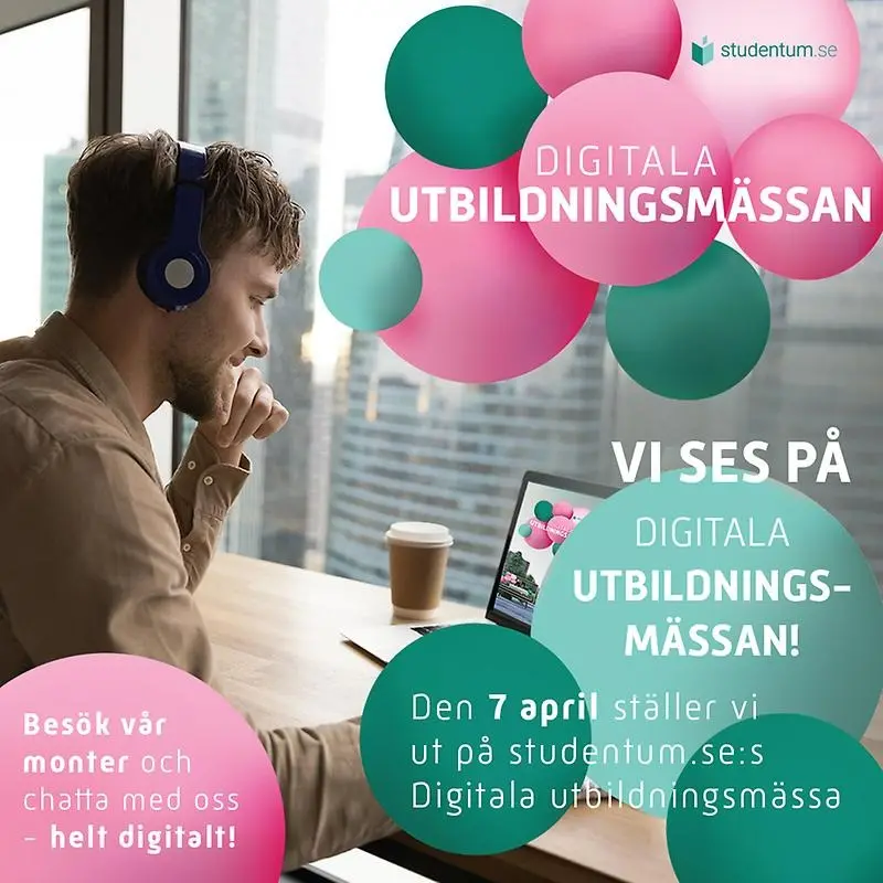 Torsdag den 7 april deltar skolorna på Studentums digitala utbildningsmässa. Där kan du både läsa mer om våra utbildningar men också chatta med oss om du har några frågor.