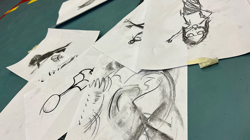 Med fokus på den prestationsfria kreativiteten erbjuder vi en konstnärlig fristad där tankar och uttryck får dansa fritt i studion tillsammans med ledarna. Danskonstnär Linn Kvamme guidar dig i rörelse som får följa med in i koltecknandet tillsammans med bildkonstnär Jennie Dahlén. Deltagarna får prova olika övningar i bild och dans, delvis där uttrycken står var för sig och delvis där de kombineras.