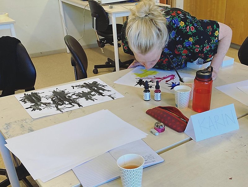 Med hjälp av akvarell eller kaffe-stänk letar vi efter figurer som vi sedan tecknar av. Beroende på deltagarnas tidigare kunskaper arbetar vi vidare med figurerna så att dom blir fullfärdiga karaktärer. En rolig och kravlös övning som ger fantasifulla resultat!