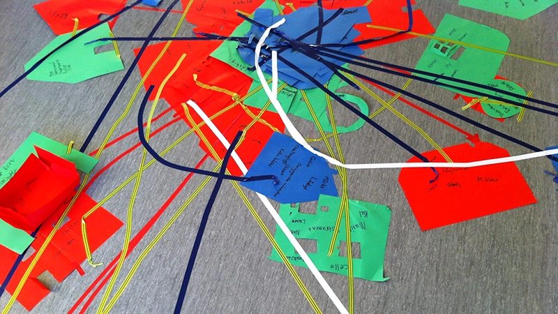 - Vi bygger eller ritar en karta utifrån var vi bor och hur vi förhåller oss till varandra. Vi övar på symboler och övar motorik.