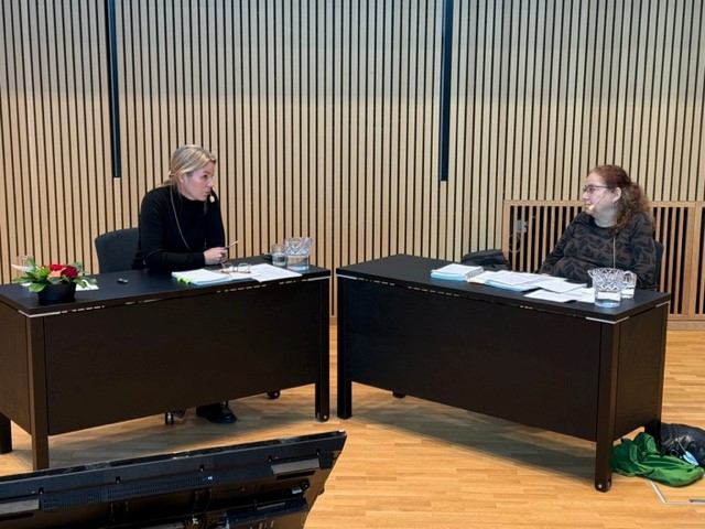 Johanna Rehnberg (t.v.) vid disputationen på Örebro universitet. Till höger sitter opponent Annette Bruchfeld, professor i njurmedicin.