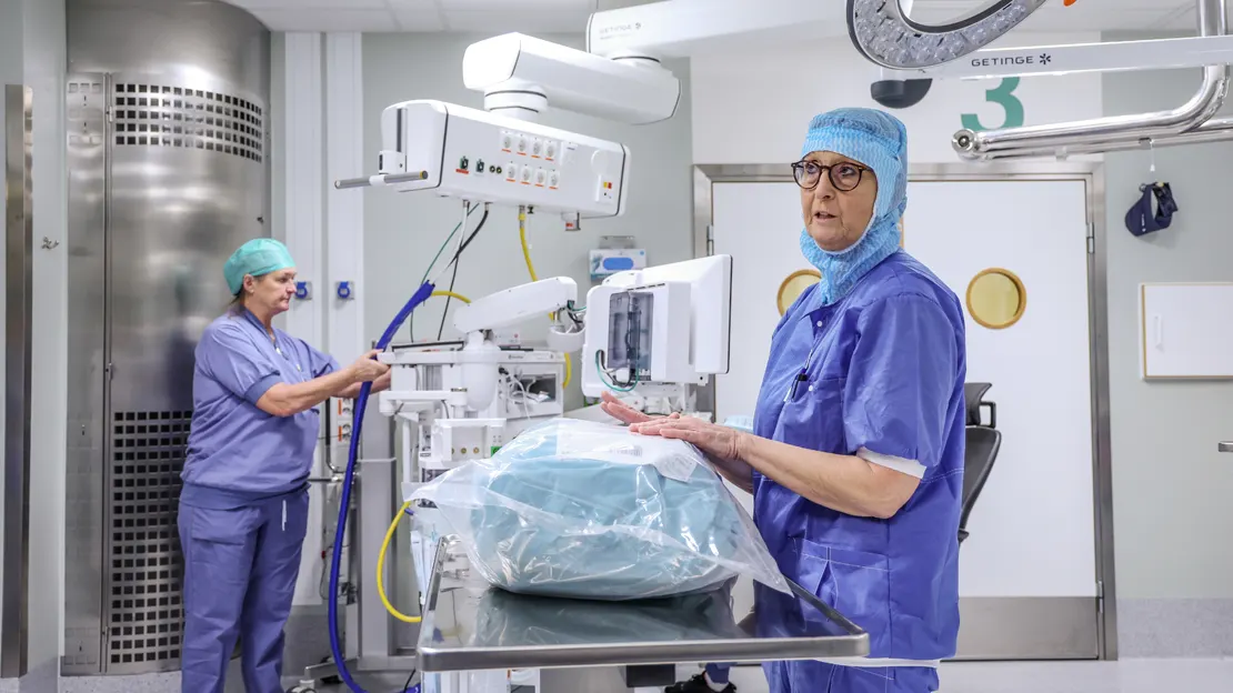 – Klädseln, hur många som är i rummet, hur vi rör oss och hur luften cirkulerar – varje detalj spelar in och bidrar till att minska infektionsrisken, berättar Åsa Falk, operationssjuksköterska och sektionsansvarig som jobbat på sjukhuset sedan 1984.