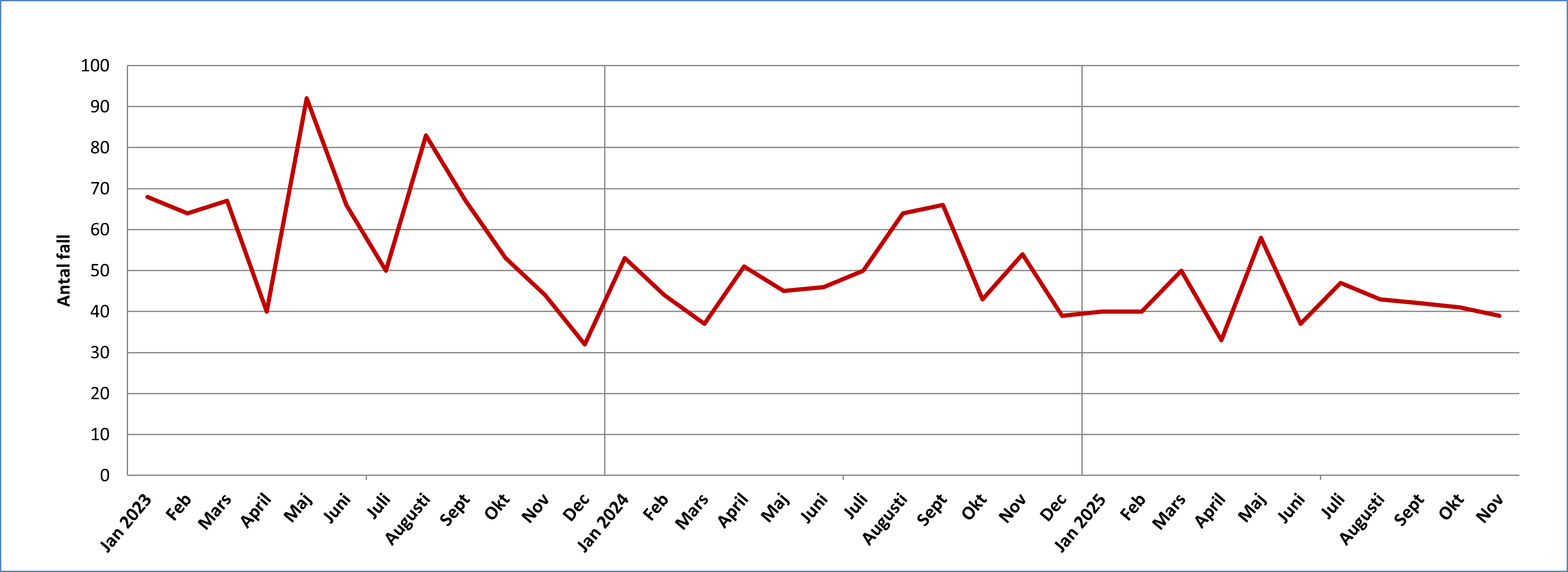 Antal fall av klamydia i Värmland per månad 2023-2025