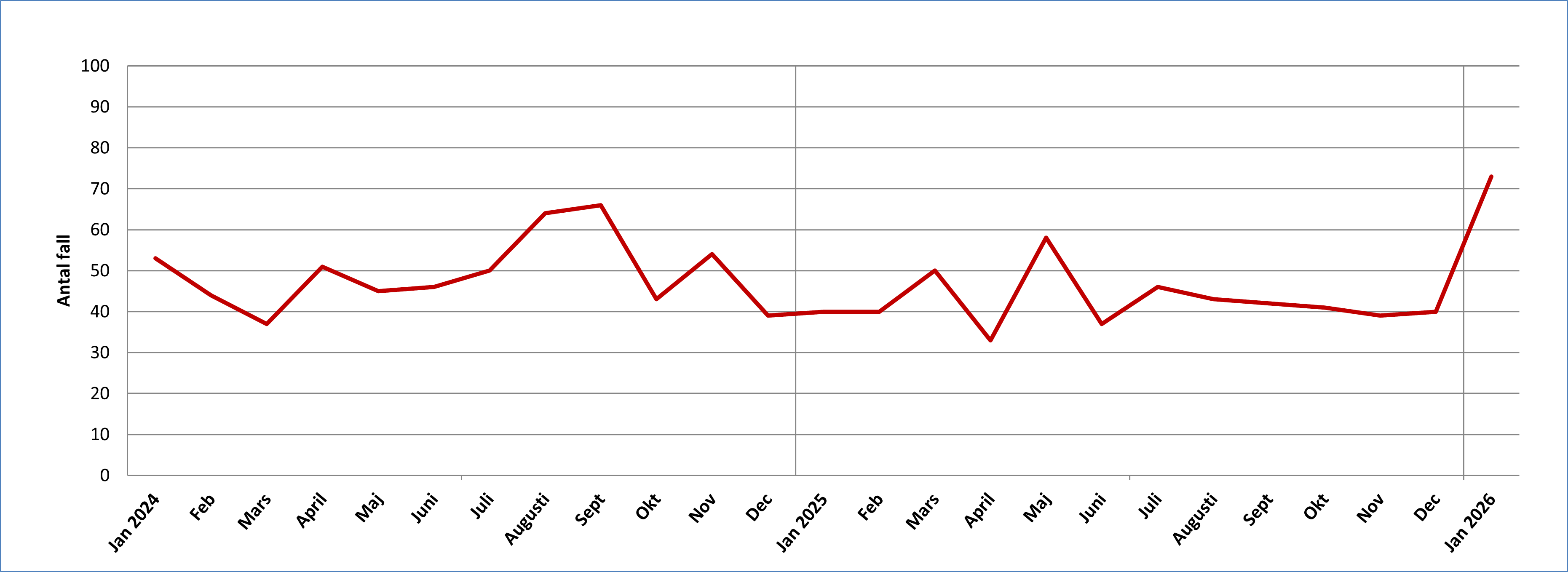 Antal fall av klamydia i Värmland per månad 2024-2026