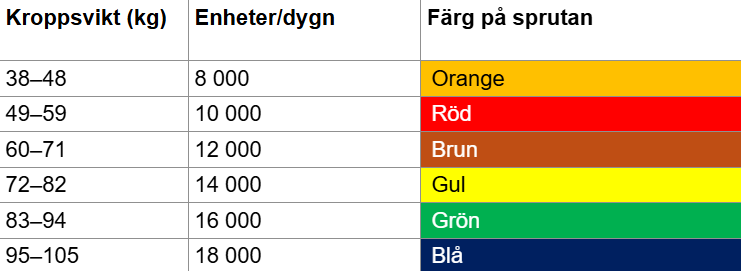 - Vid kroppsvikt över 120 kilo räknar man ut dosen och väljer lämplig spruta för rätt profylaxdos.