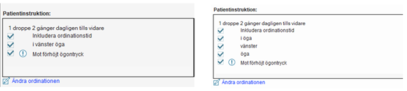Det du behöver vara uppmärksam på är när du ordinerar utan ordinationsmall samt i vissa fall där Cambio inte har kunnat översätta den tidigare termen till något passande. I vissa fall kan förändringen också innebära att informationen står dubbelt, då kan du kryssa ur det som inte är aktuellt i Utkorgen.