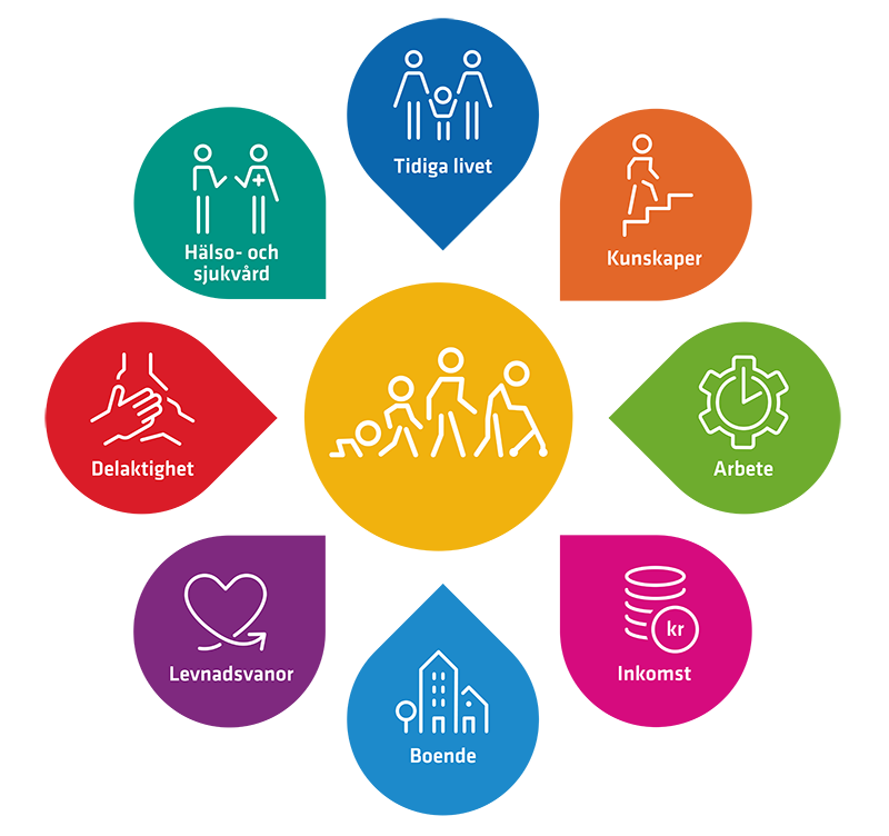 Figur 2. De åtta folkhälsopolitiska målområdena. Illustration: Folkhälsomyndigheten.