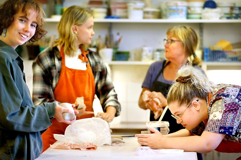 Hantverk är en bred konsthantverksutbildning där du får pröva olika tekniker. Du lär dig grunder inom keramik, trä, bild och textil. Det finns även möjlighet att gå ett andra år.