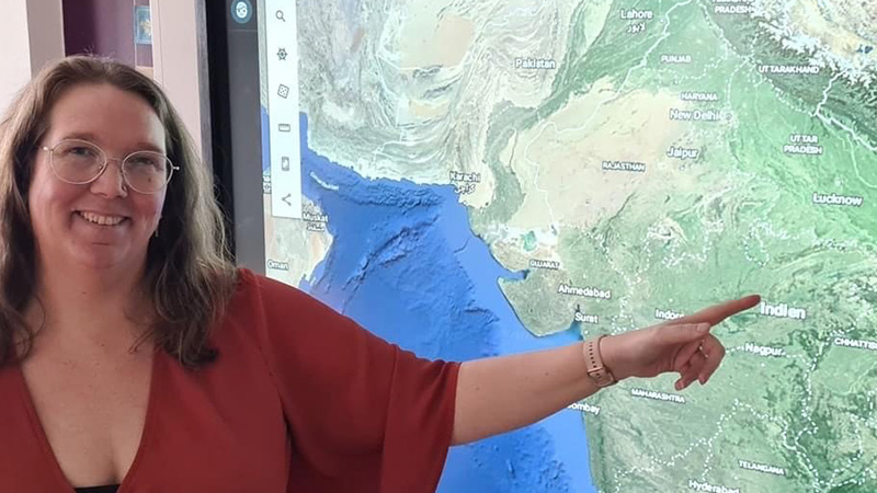 Ämnesläraren Brita Ahlenius pekar ut resmålet.
