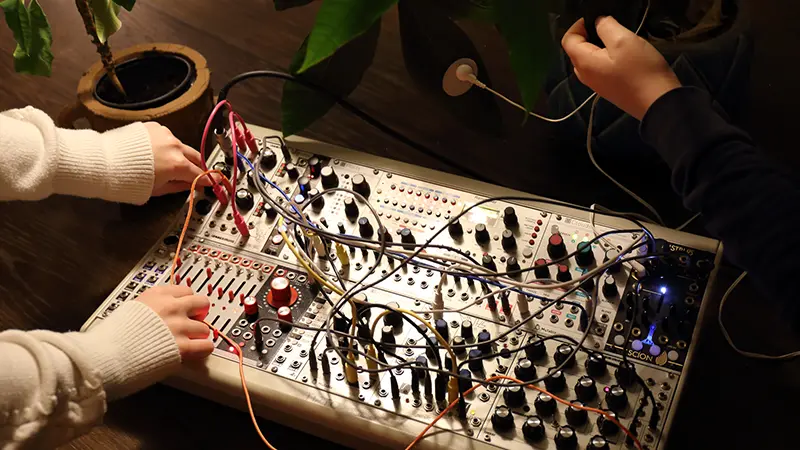 När deltagarna kommer in i klassrummet spelar vi en kort konsert med växter och synthar. Vi har en kort presentation av vårt konstnärskap där vi berättar om hur vi skapar musik genom att omvandla växternas elektriska aktivitet till toner, melodier och rytmer. Vi introducerar växtvärldens signalsystem och hur de använder elektriska signaler för att kommunicera internt och med andra organismer i sin omgivning. Nu börjar experimenten med sensorerna där vi gemensamt lyssnar på flera olika växter i klassrummet. Vi kopplar GSR-sensorer till de olika växterna, som fångar upp elektrisk aktivitet, och som sedan omvandlas till ljud genom en modulär synth. Ljudet spelas upp genom en högtalare i rummet och vi jämför och diskuterar ljudet från de olika växterna. Därefter får deltagarna studera växterna enskilt genom olika teckningsövningar, som blindteckning, konturteckning, skuggteckning och abstrakt teckning. Deltagarna får lyssna på sina egna bio-elektriska signaler och jämföra med växternas.
