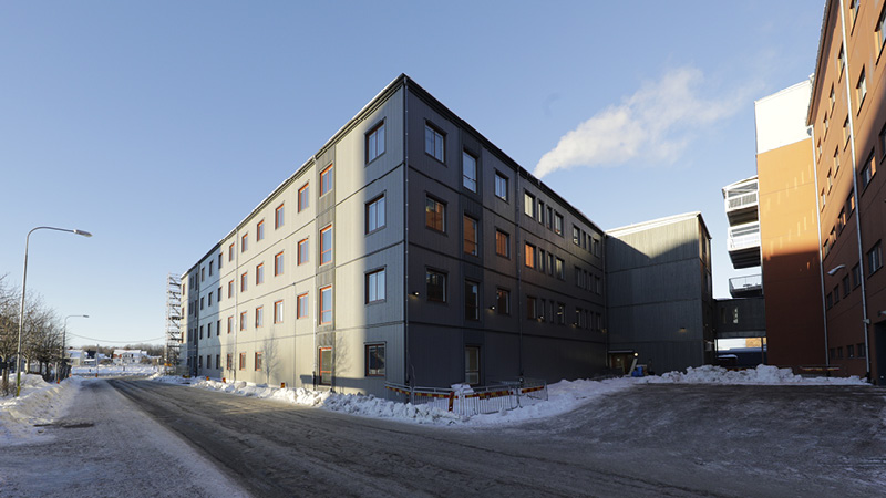 Nybyggnationen består av tre olika hus med vårdenheter.