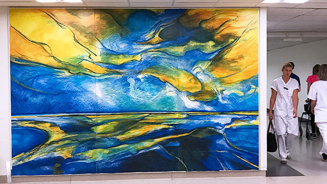 Konstnärlig gestaltning av våra gemensamma rum bidrar till en god och berikad vårdmiljö. I de stora förändringar som sjukhuset står inför kan konsten fungera som brygga och förbinda det nya med det gamla.