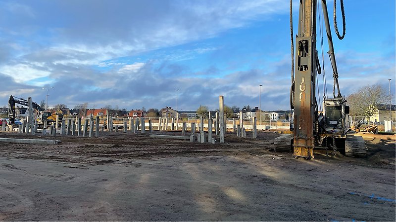 Pålarna behöver slås ända ner till berget som har varierande höjd och därför sticker pålarna upp olika högt. I snitt är det 20 meter till berg från marknivån. Den längsta pålen är på 24 meter och de kortaste pålarna är 15 meter långa. När alla pålar är på plats kapas de i rätt längd för att passa in i grundplattan som ska byggas.