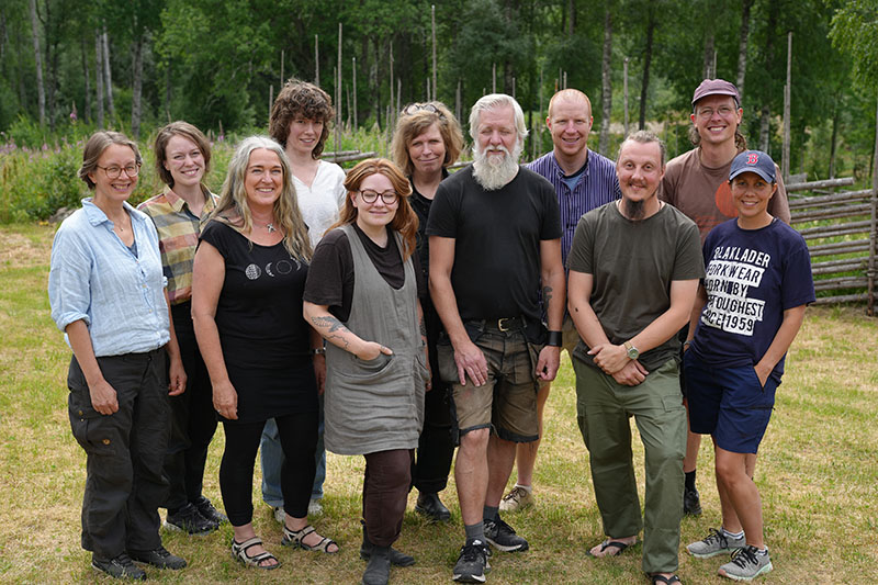 Finnskogskulturen har bidragit till en värdefull slöjdtradition. Under sex dagar har åtta slöjdare vistats på Mattila finngård för att utvecklas i sitt slöjdande och lära mer om ekologi, skog och hållbarhet. Här är sju av dem tillsammans med Region Värmlands hemslöjdsutvecklare Kajsa Stinnerbom, Sara Olsson samt Pernilla Ekenståhl, verksamhetsutvecklare Hemslöjd Gävleborg och Susann Levál, länshemslöjdskonsulent Västmanlands hemslöjdsförbund (bakre raden från vänster). I bakre raden är också deltagarna Daniel Evaeus och Henning Lemcke, Främre raden Ulrika Jäger, Ellinor Siljeström, Joakim Nilsson, Johan Huuva och Birgitta Ryberg. River Karlsson saknas på bilden.