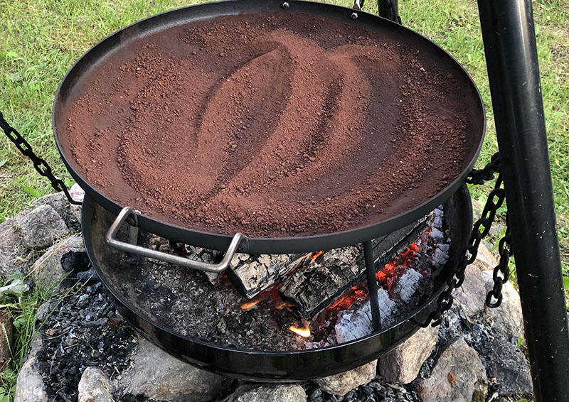 Leran bränns över öppen eld och blir så småningom pigmentfärgen rödockra