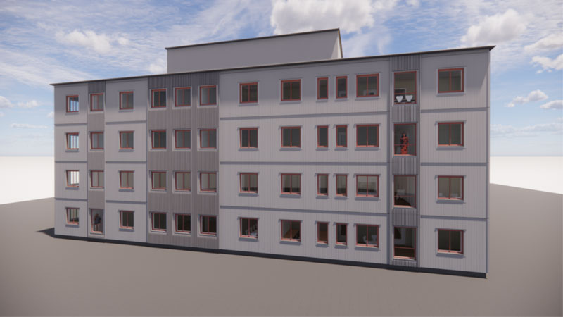 Byggdialog har fått i uppdrag att utföra en grundläggning för kontorsmoduler med försörjning av vatten, el, tele och fiber samt förbindelsegång från Hus 2 på plan 2 till de nya kontorsmodulerna.