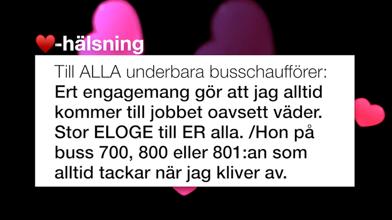 Imorgon är det många som får en extra värmande busstur mitt i vinterkylan. Kärlekshälsningar till nära och kära ombord kommer nämligen att rulla på alla tv-skärmar på Värmlandstrafiks bussar från Alla hjärtans dag till fredag.