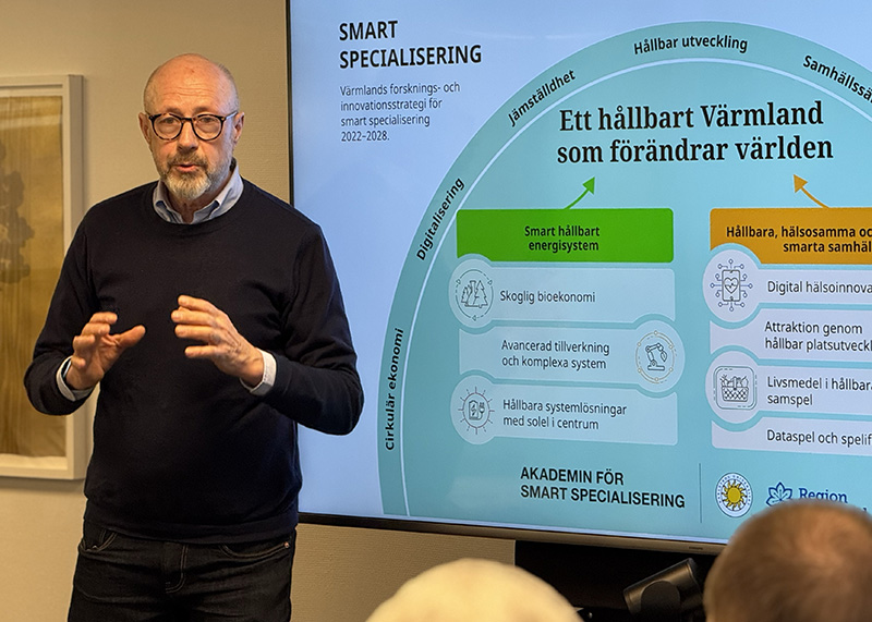 Smart Specialisering handlar om att kraftsamla runt Värmlands styrkeområden och att samla aktörerna för investering i forskning och innovation. Här berättar Anders Olsson för regionala utvecklingsnämnden om resultat och effekter de tre senaste åren.