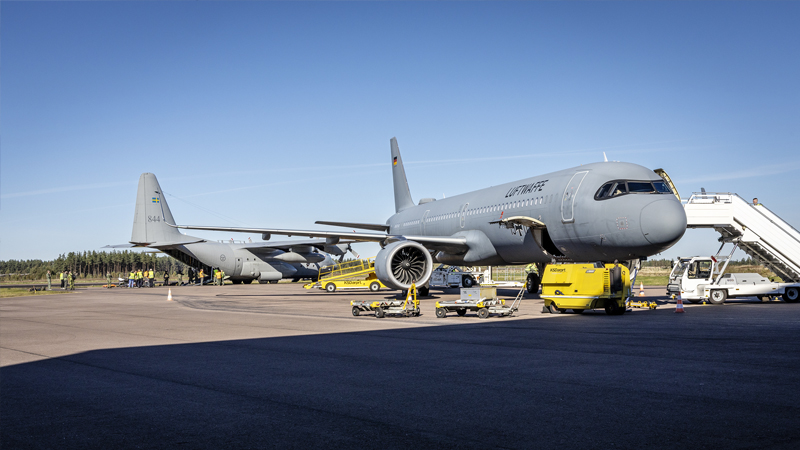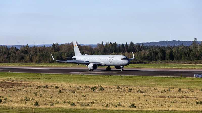 Det är dag tre på den stora civila beredskapsövningen Resilient care 25 och klockan är 10.52 när det tyska flygvapnet landar med sårade och sjuka.
