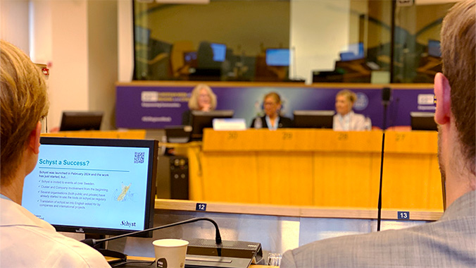 Elin Appel, projektledare från Paper Province, och Lena Witting, projektledare från Region Värmland, presenterade projektet och hade en genomgång av schyst.se på Region Värmland European Office.
