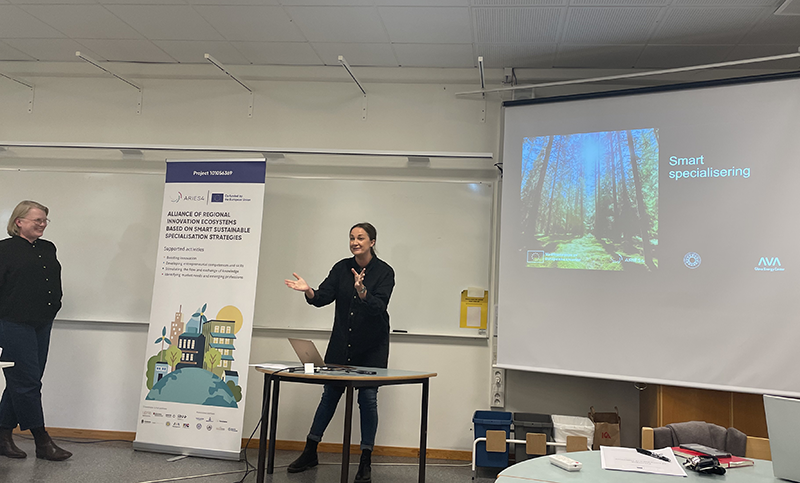 Seminariet hade som utgångspunkt dels det europeiskt jämförande projektet om hållbarhetsperspektiv i smart specialisering (ARIES4), och dels en ny avhandling i statsvetenskap om hållbarhet i svensk regional utvecklingspolitik. Lisa Gärdt är hållbarhetskoordinator på Glava Energy Center och medverkande i ARIES4.