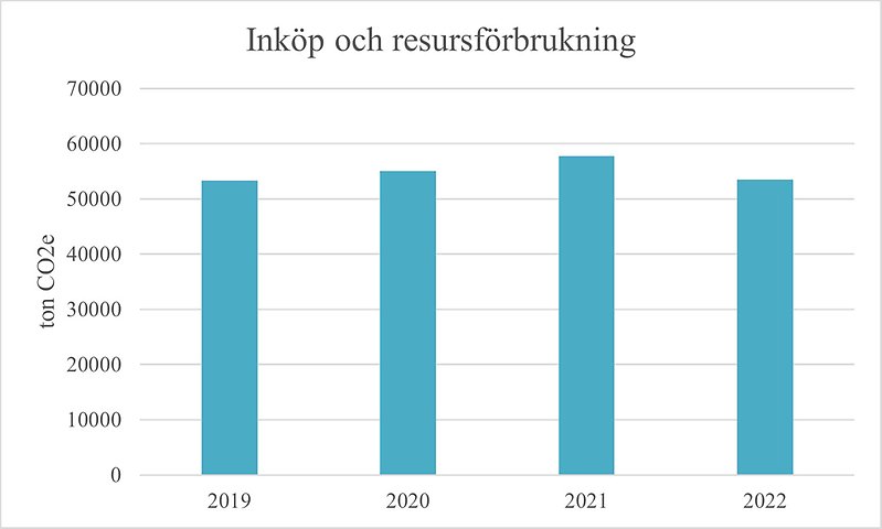 Klimatutsläppen ökade under pandemin men minskade igen 2022. Det finns en osäkerhet på dessa utsläpp då nya uppdaterade emissionsfaktorer kan komma att användas som gör att storleken på utsläppen kan både öka och minska även om inköpssumman är densamma. Avfallets klimatpåverkan ligger kvar på ungefär samma nivåer över åren.