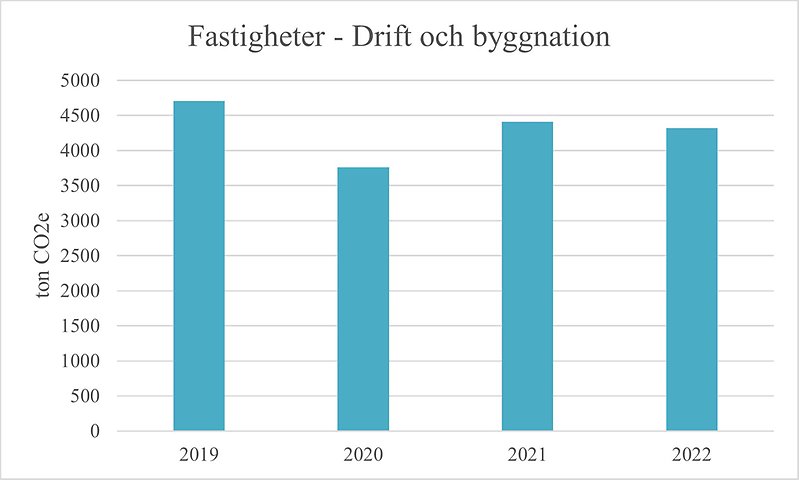 Klimatavtrycket för området fastighetsdrift och byggnation gick ner med drygt 8 procent 2022 jämfört med referensåret 2019. I området fastighet och byggnation ingår exempelvis el och uppvärmning till egna fastigheter, reservkraft och vattenförbrukning.