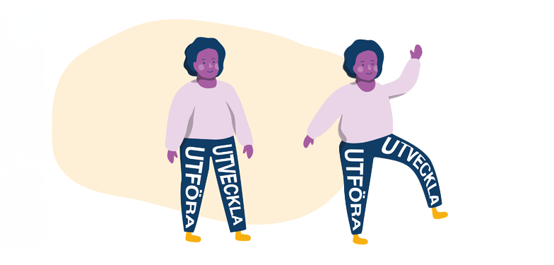 Våra mål, eller träningsmetoder, bygger på ett resonemang om att vi står på två ben. Utförarbenet är business as usual, vi gör vårt jobb. Utvecklingsbenet innebär att vi utöver ordinarie arbetsuppgifter, även utvecklar och förbättrar vårt arbete. Och när vi tar extra stora kliv med utvecklingsbenet kan innovationer uppstå.