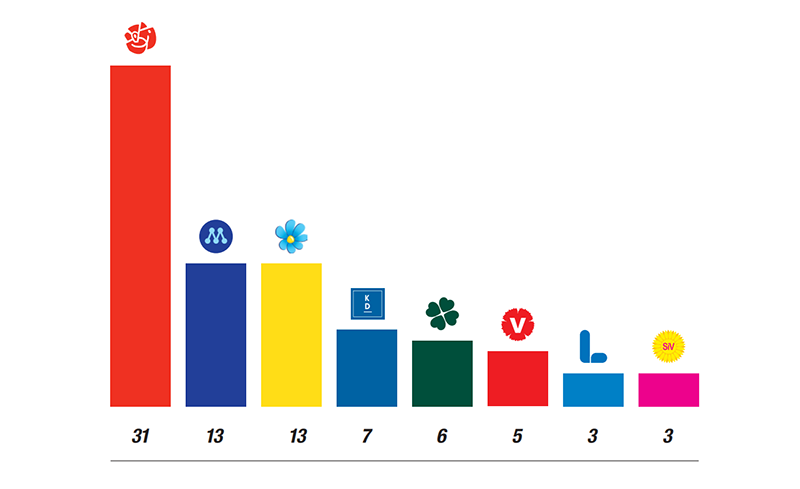 Övriga mandat fördelas mellan Moderaterna 13, Kristdemokraterna 7, Liberalerna 3, Sjukvårdspartiet i Värmland 3 och Sverigedemokraterna 13.