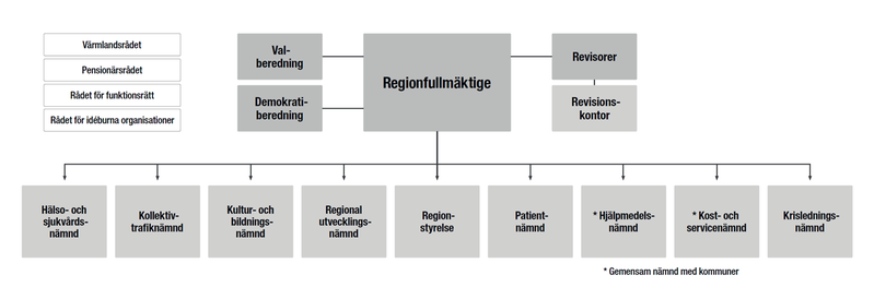 Region Värmland är en politiskt styrd organisation. Det politiska arbetet inom Region Värmland är organiserat i ett antal politiska organ, där regionfullmäktige är det högsta beslutande organet.