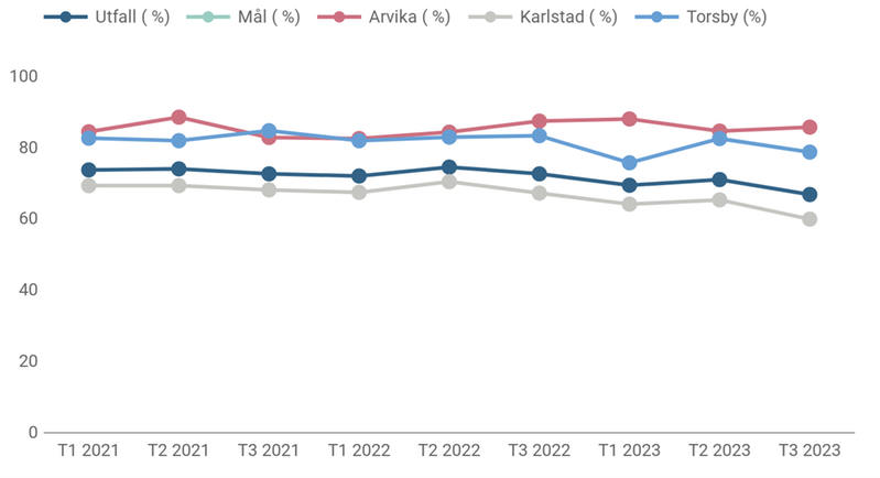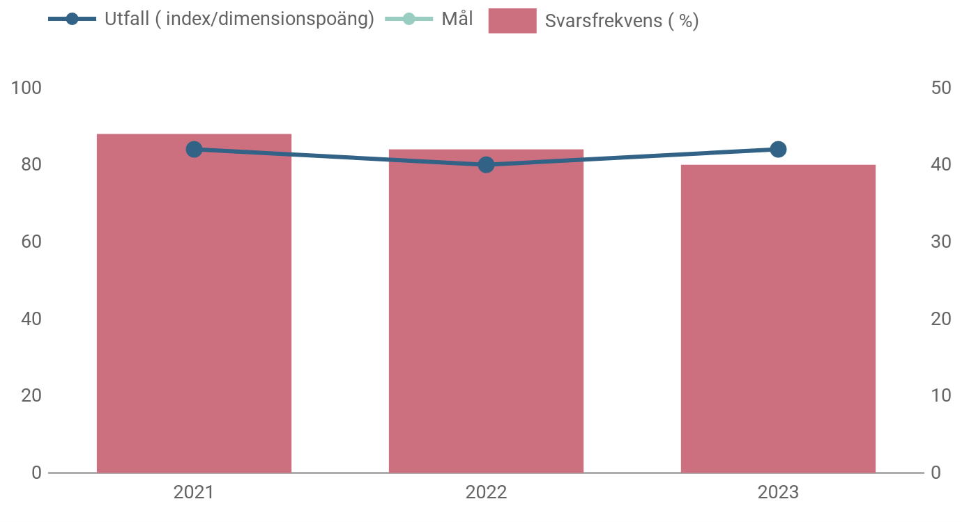 Svarsfrekvensen för hela Region Värmland i 2023 års medarbetar- och säkerhetsenkät var 81, 2 procent. Svarsfrekvensen för hälso- och sjukvården var 79,9 procent.