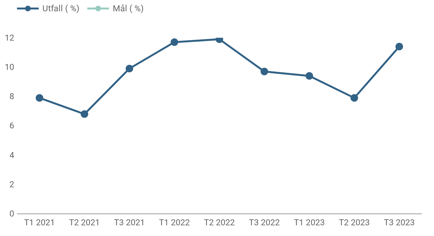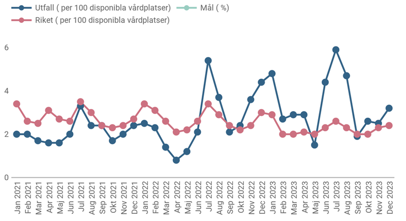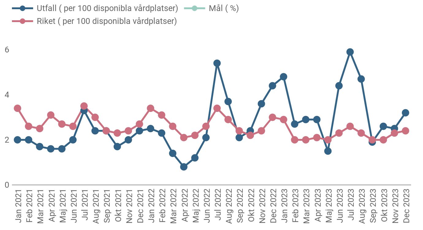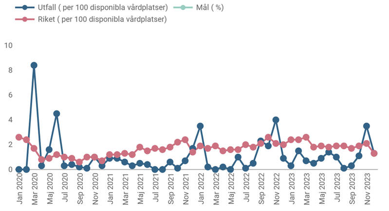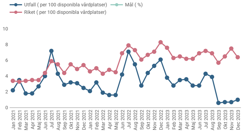 Totalt 2023: 1,1 per 100 disponibla vårdplatser
