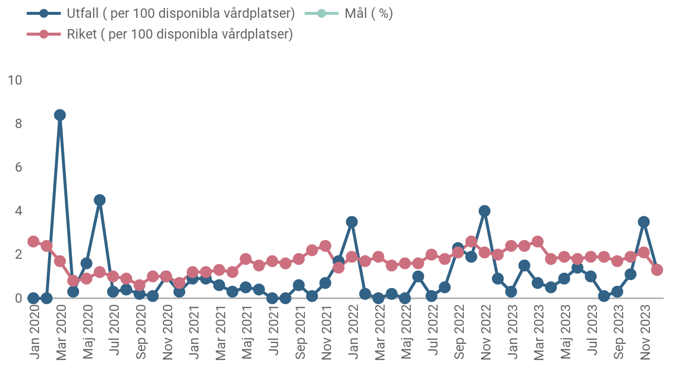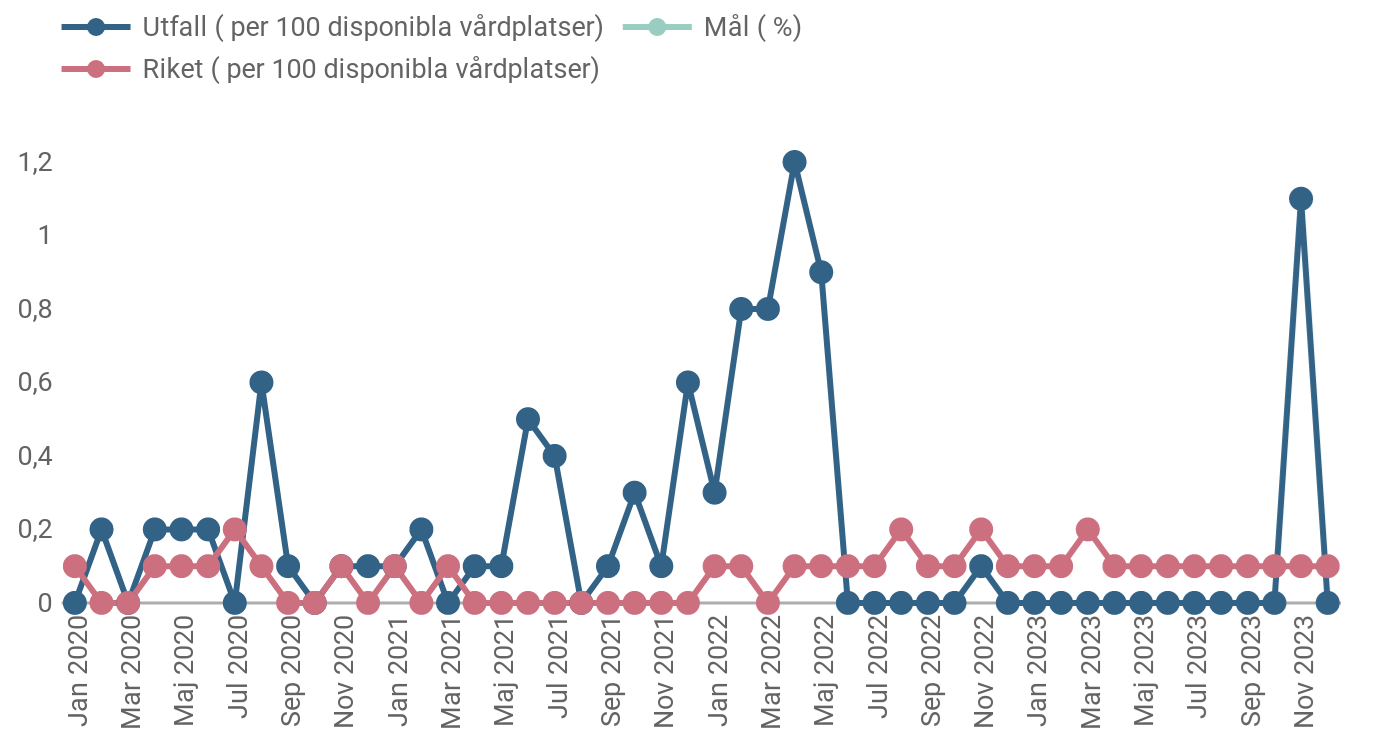 Totalt 2023: 0,1 per 100 disponibla vårdplatser