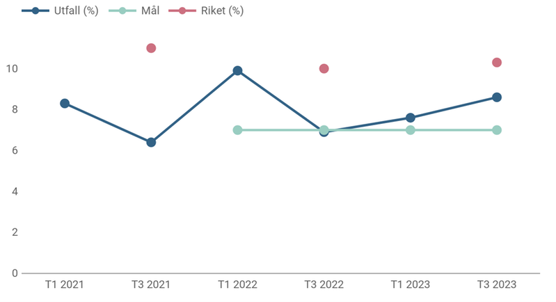 Totalt 2023: 3,3 per 100 disponibla vårdplatser