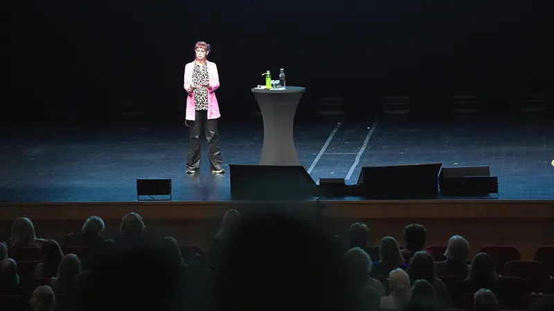 Föreläsaren Joanna Halvardsson tog med deltagarna på sin 25-åriga resa inom psykiatrin. I en gripande, rolig och informativ föreläsning berättade hon hur hon fastnade i psykiatrins karusell, om kampen om att få rätt vård, och om hur hon tog sig ur den.