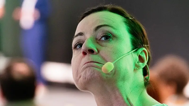 Charlotte Lindmark spelade tre olika karaktärer under hela konferensen där hon synliggjorde mänskliga beteenden och fick gruppen att reflektera och framför allt att skratta.