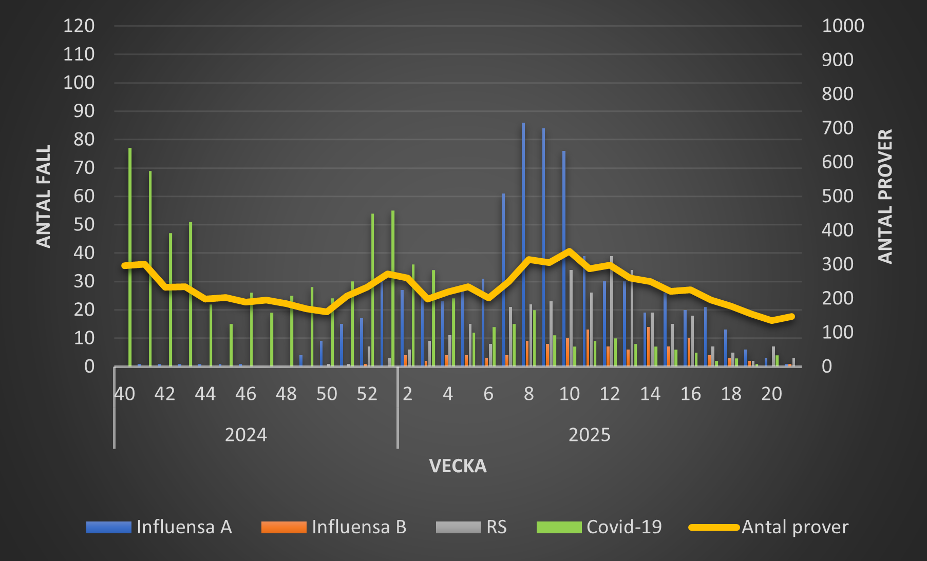 Här presenteras statistik över luftvägsvirus - influensa, RS och