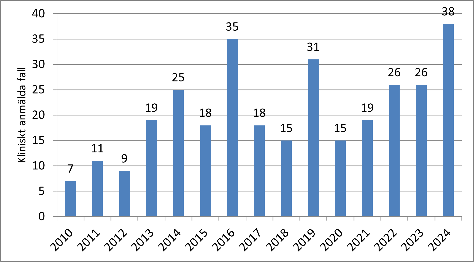 Statistik för antal fall av gonorré i Värmland samt i Sverige.