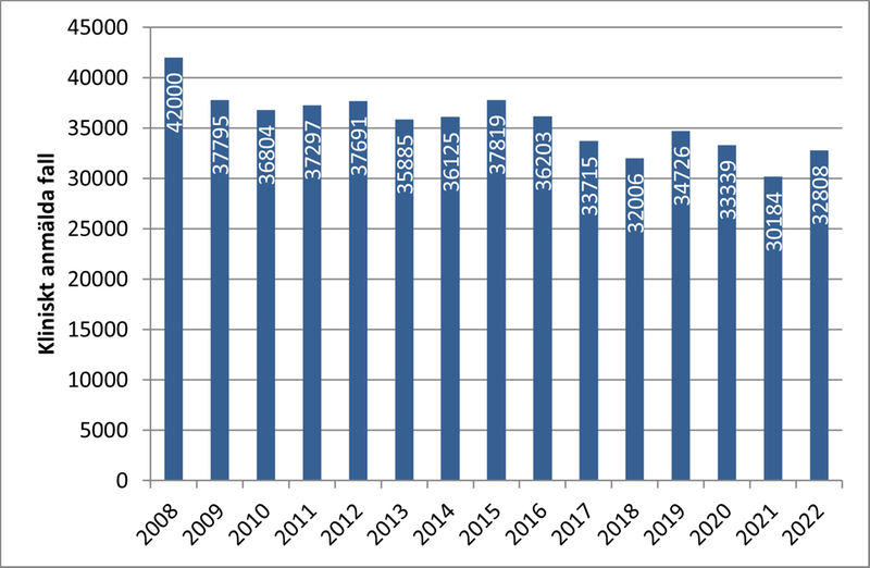 Antal fall av klamydia i Sverige mellan 2010-2024
