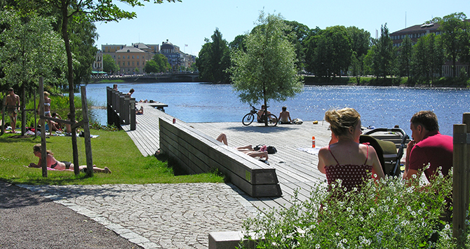 På Sandgrundsudden kan du bada i älven, mitt i centrala Karlstad.