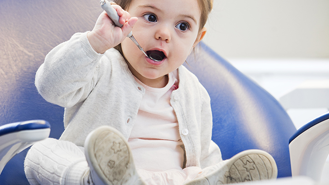 Redan när den första tanden syns är det viktigt att börja borsta på barnet morgon och kväll med fluoridtandkräm. Läs mer om tandborstning här.