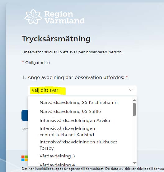 Instruktion för inrapportering av trycksårsmätning i Forms