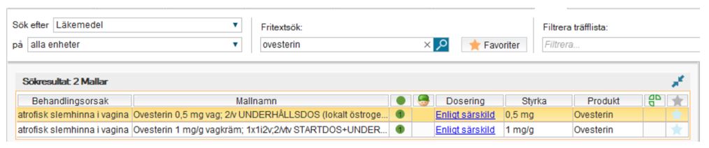 Läkemedel som ingår i Rekommenderade läkemedel har en ordinationsmall i Cosmic och en grön boll (se bild). Siffran i bollen visar om läkemedlet är första- eller andrahandsval.