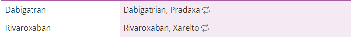 Bild 1. Dabigatran och rivaroxaban är två Non-vitamin K Orala AntiKoagulantia (NOAK) där generiskt utbyte finns tillgängligt. Det markeras i Rekommenderade läkemedel (avsnitt hjärta och kärl) med en utbytesbil.