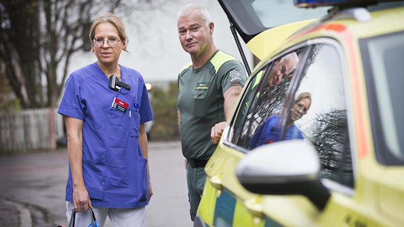 Läkare Ulrika Svensson och sjuksköterska Nils Fogelqvist bemannar den mobila akutbil som utgår från akutmottagningen på Centralsjukhuset i Karlstad.