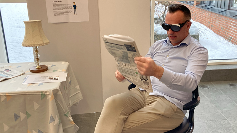Hur kan det kännas att försöka läsa tidningen med en synnedsättning? Som en del i ett ledarskapsprogram får norska hälso- och sjukvårdsledare kliva in i rollen som patient genom att testa olika empatistationer.