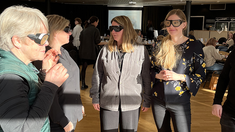 Ett sätt att få ökad förståelse för hur olika ögonsjukdomar kan påverka livet, fick deltagarna genom att prova delar ur en så kallad empativerkstad, olika sätt att testa att gå i någon annan skor. Här testar några hur det kan vara att leva med en synnedsättning. – Ett väldigt uppskattat inslag, säger Jenny.
