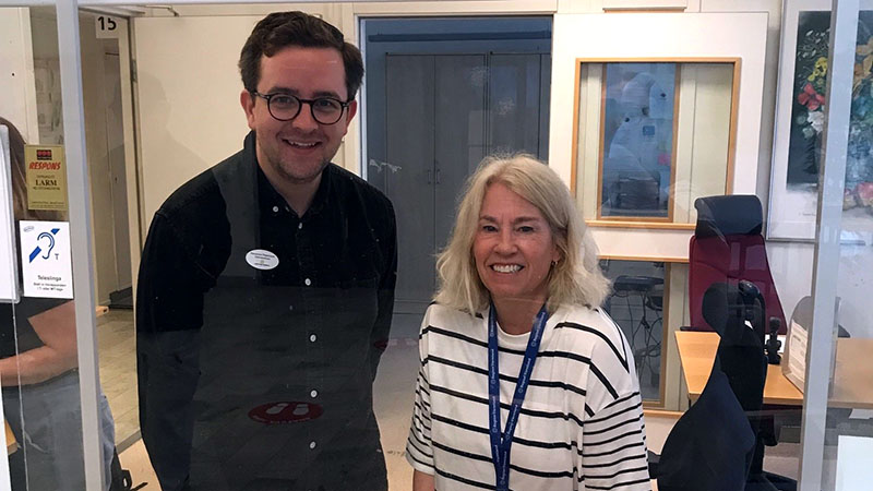 Utökat samarbete mellan Region Värmland och Karlstads kommun kring biståndsbedömare efter lyckat test på akuten. På bilden syns biståndsbedömare ALexander Pettersson, Karlstads kommun och Malin Lundgren Kullgren, enhetschef på vårdcentralen Gripen, Region Värmland.