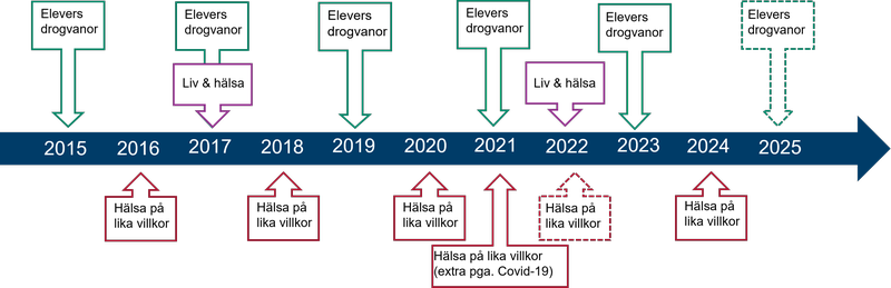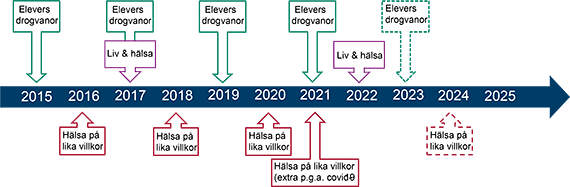 - 2021: Elevers drogvanor, Hälsa på lika villkor (extra på grund av covid-19)