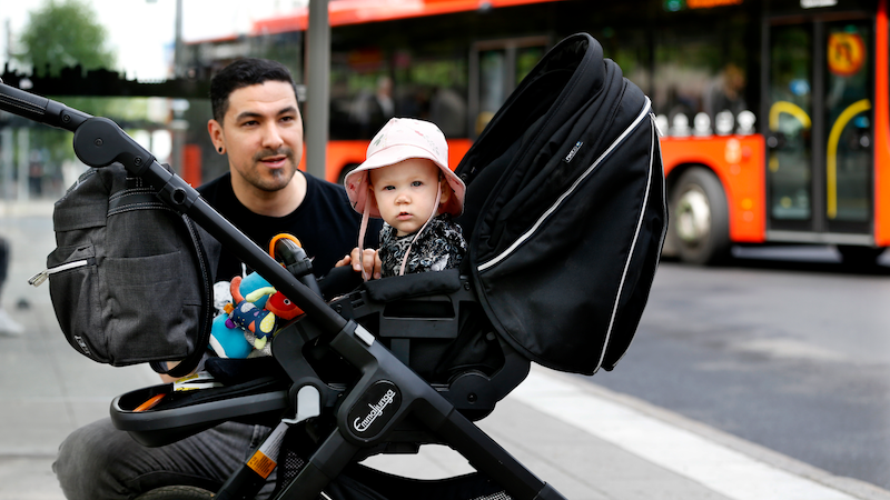 Du som reser med barn i barnvagn får rabatt kl 10 – 14 på enkelbiljett köpt med reskassa ombord på bussen eller tåget. Gäller både i tätort och ute på länet. Priset baseras på ressträcka och är detsamma oavsett hur gammal du som reser med barnvagnen är.